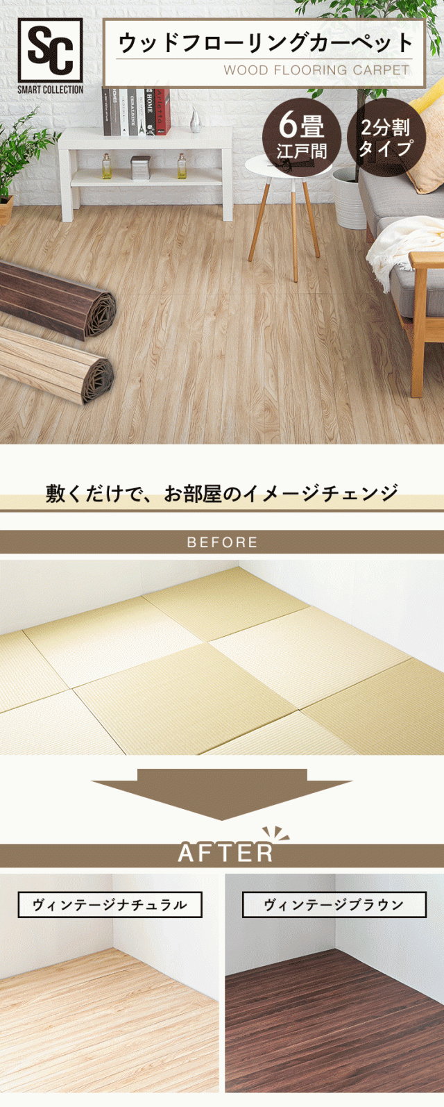 ★全品対象250円offクーポン★ ラグ カーペット フローリング フローリングマット ウッドフローリングカーペット 6畳 江戸間 WDFC-6E 全2色 簡単 敷くだけ カーペット ウッドカーペット フローリング マット ウッド 木目 ロール式 6畳 江戸間 リフォーム 送料無料