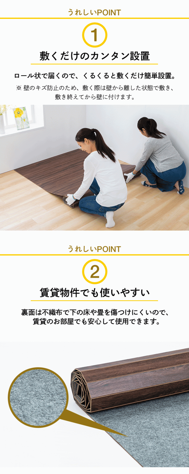 ロール状で届くので、くるくると敷くだけ簡単設置。