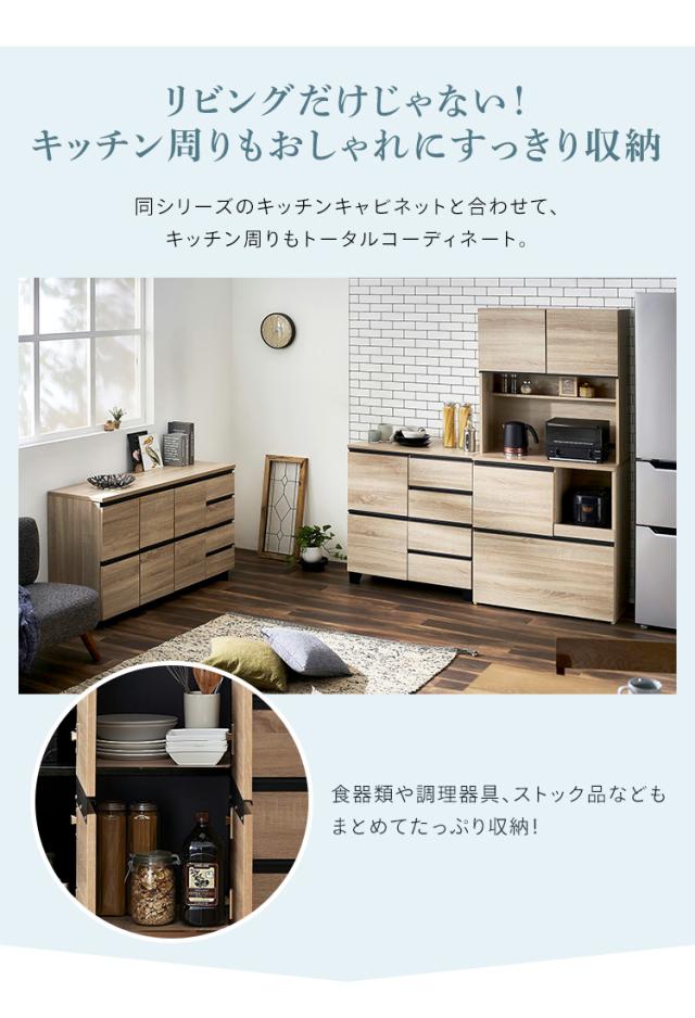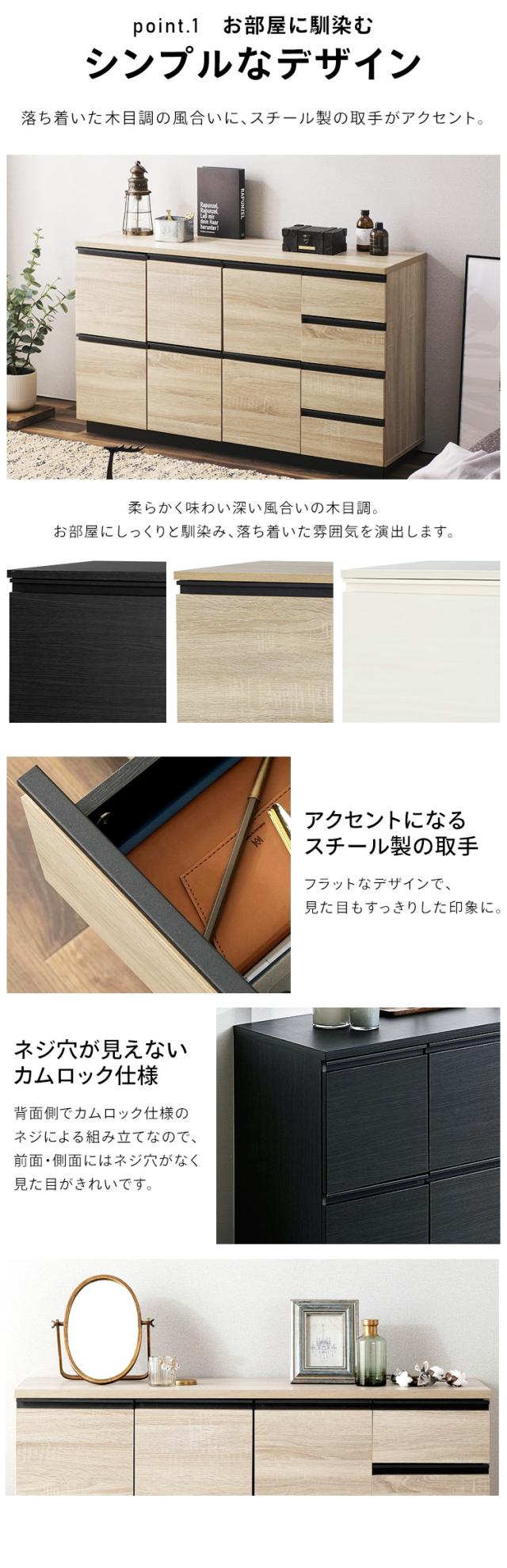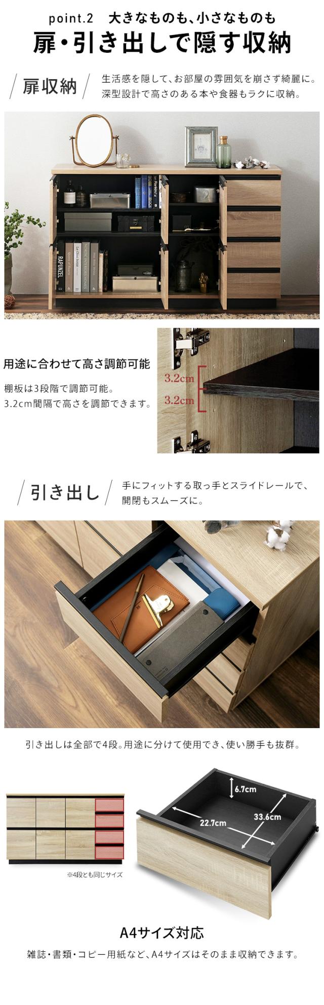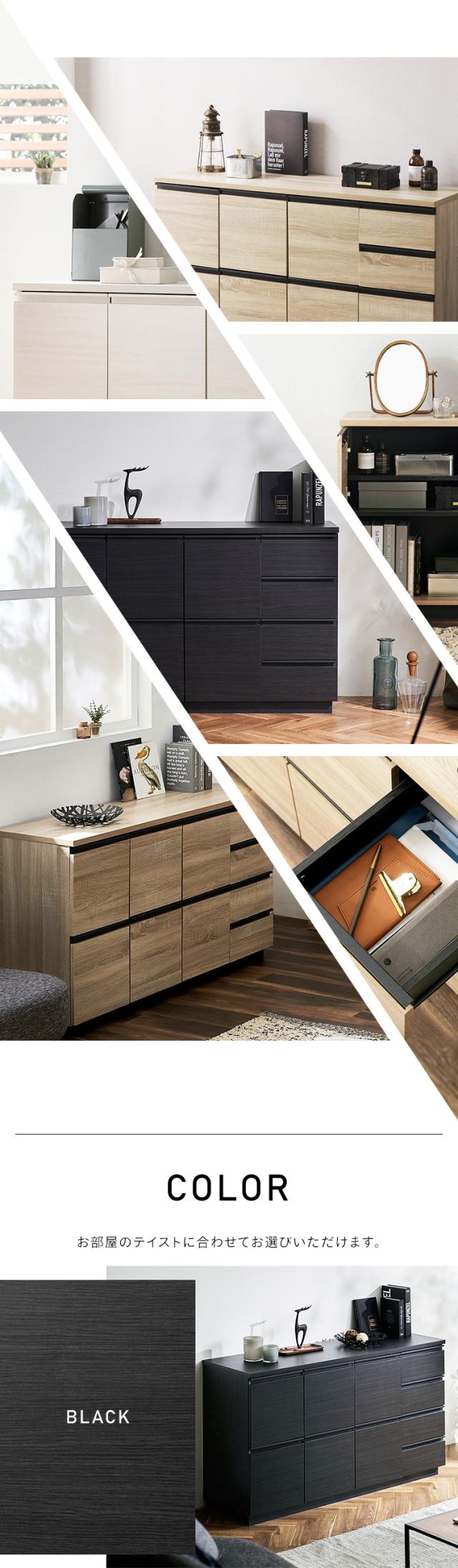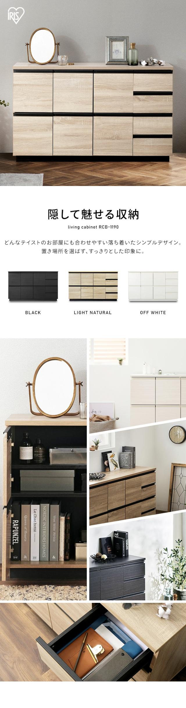 ★全品対象250円offクーポン★ 棚 キャビネット リビング収納 チェスト リビングキャビネット RCB-1190 ブラック ライトナチュラル オフキャビネット チェスト ラック 扉収納 引き出し 組み立て 木目調 木製 リビング 居間 アイリスオーヤマ