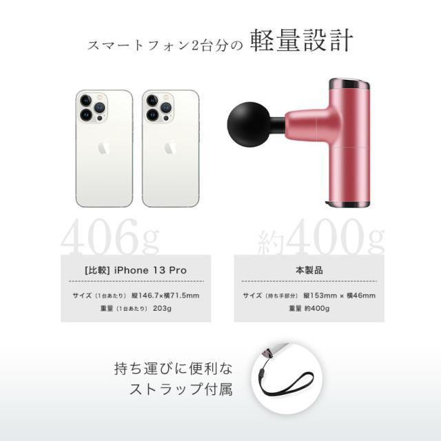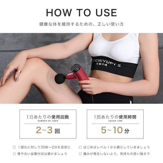 | 【商品説明】 日々のボディケアをこの1台でフルサポート。 深く、強く、届いてピンポイントで刺激。 ピンポイントで強力な高周波振動が深い筋膜に浸透し 筋肉を痛みから和らげ、疲労から解放します。 交換可能な4種類のマッサージヘッドにより、 マルチアングルでのリラックス効果を楽しむことができます。 【サイズ】 縦153mm × 横46mm 【重量】 縦400g 【カラー】 ピンク、ブラック、シルバー、グリーン 【充電方式】 USB式(Type-c) ※USBアダプターを使用する際は2A以上対応の物をご使用ください。 |