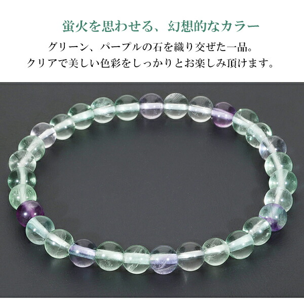 フローライト ブレスレット 6mm 16.5~17.5cm S~L サイズ 天然石 パワーストーン メンズ レディース 数珠ブレスレット グリーン パープル 緑 紫