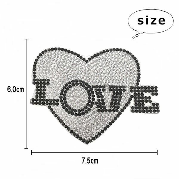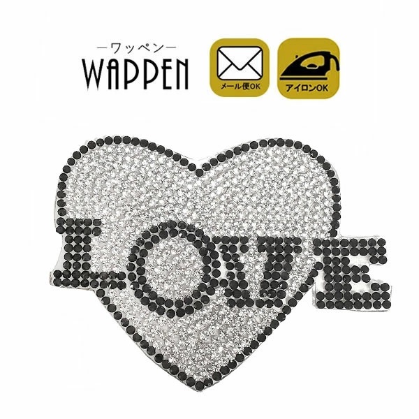 ストーン ワッペン わっぺん 縦6.0cm×横7.5cm アイロン接着 LOVE ハート heart キラキラ 手芸 デコ ダンス 入園 入学 アップリケ 母の日 プレゼント ギフト