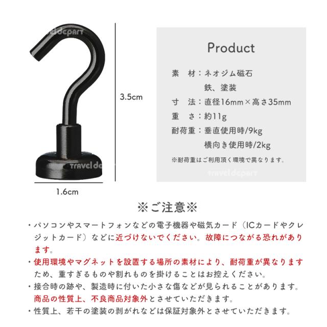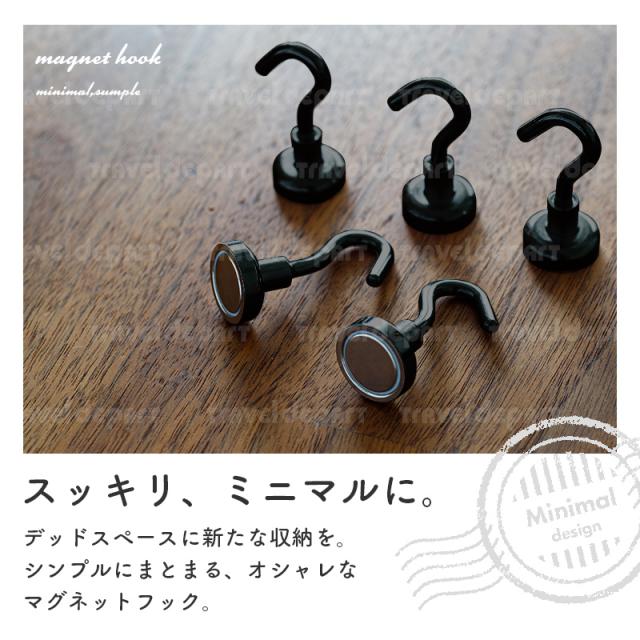 マグネット フック ブラック 5個セット おしゃれ 強力 かわいい シンプル Magnet Hook ネオジム磁石 フック 強力フック シンプル 収納小物 便利グッズ キッチン ミニマル ミニマリスト かっこいい