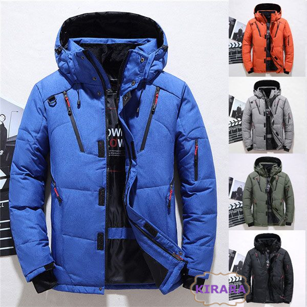 ダウンジャケット メンズ 中綿ジャケット アウター ブルゾン 防寒 厚手 暖かい 防風 軽量 ハイネック フード付き スリム 無地 コート 冬物新作 おしゃれ カジュアル 大きいサイズあり
