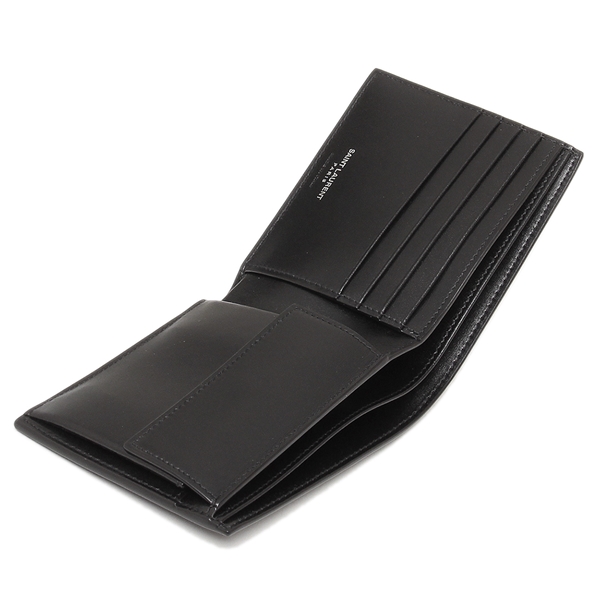 SAINT LAURENT PARIS(サンローランパリ)の2つ折り財布が入荷しました☆コントラストの効いたメタルロゴが目を引くデザイン。複数のカードスロットとマチ付きのコイン入れ、お札ポケットを備え、機能性も抜群です。シンプルなルックスで流行に左右されず、長く愛用していただけます。