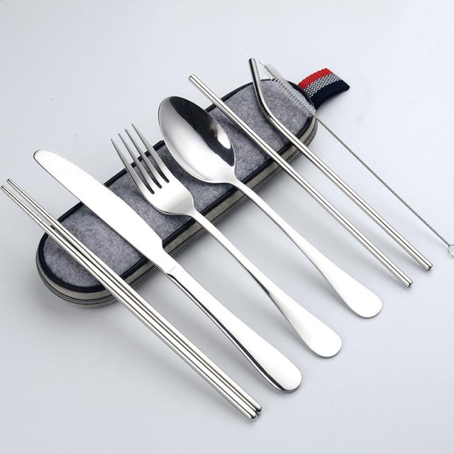 旅行のための8個/セットステンレス鋼の飲用ストローナイフフォークスプーン箸カトラリーセット