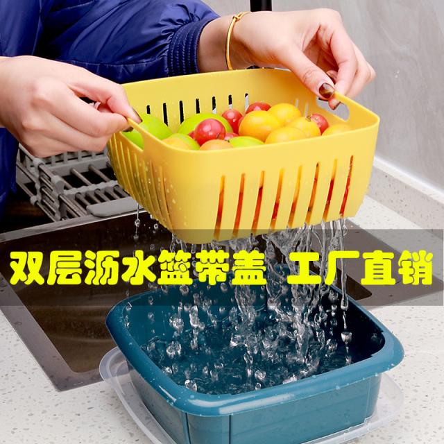 ふた付き家庭用冷蔵庫フルーツ野菜ドレンバスケット付き2段収納ボックス