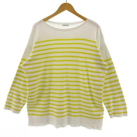【中古】フォーク&スプーン FORK & SPOON Tシャツ 長袖 ロンT ボーダー ボートネック 厚手 ホワイト 白 黄 ONE