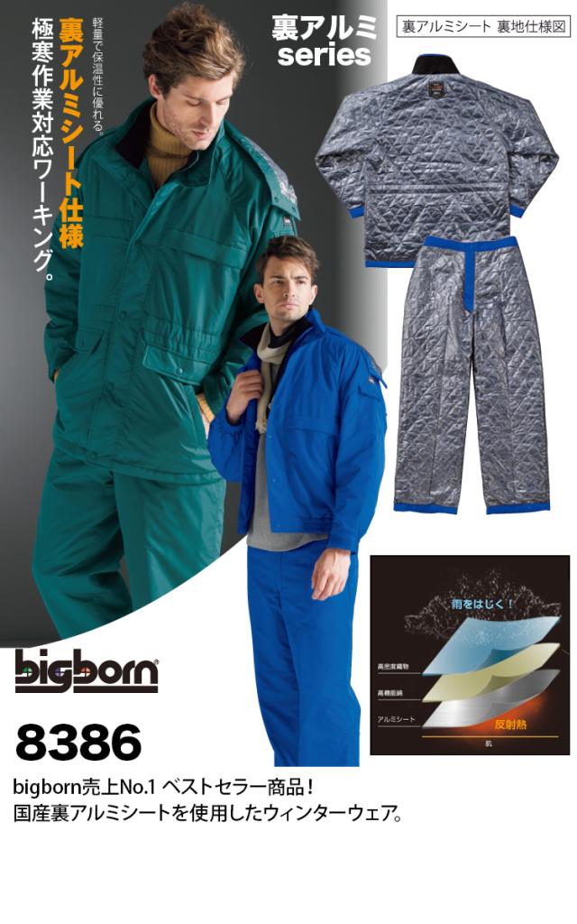 ビッグボーン 防寒ジャケット パンツ 上下セット 8386 8382 4L 5L 大きいサイズ 撥水 軽量 保湿性 国産 裏アルミ ベストセラー 保温性抜群 軽くて暖かい構造 動きやすくて疲れにくい驚きの軽さ 東レ 国産素材