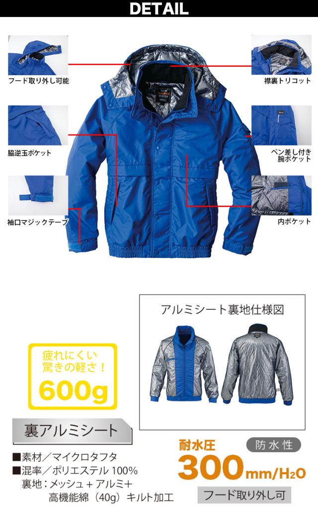 -35℃の作業環境でも寒さを感じさせない。表面は撥水加工なので外からの水の侵入を防ぎます。