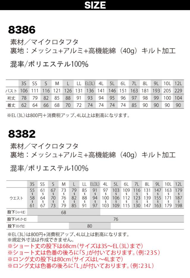 8385:防寒ジャケット+8382防寒パンツの上下セット
