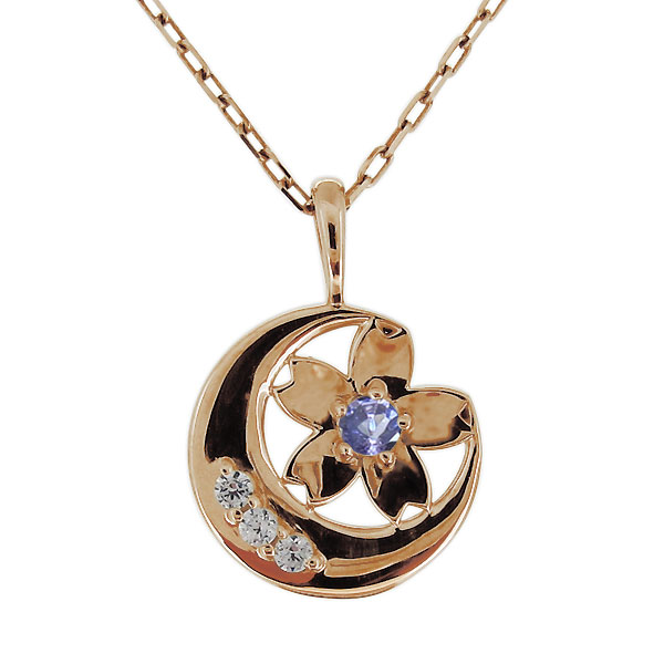 ネックレス レディース 18金 k18 桜 さくら タンザナイト 三日月