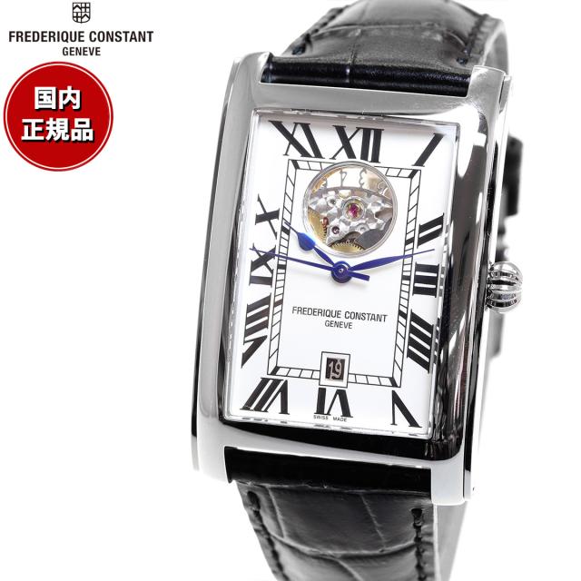 フレデリック・コンスタントの象徴、時計の心臓部の鼓動”ハートビート”が楽しめるコレクション。レクタンギュラーケース”カレ”シリーズの日付表示モデルです。デイト表示の日付板にもスケルトン加工を施しているため、時を刻むメカニズムを見て楽しむことができます。大ぶりのローマン数字インデックス、ケースデザインに合わせたレイルウェイデザインも印象的で、王道のクラシカルなルックスの日本限定モデルです。【フレデリック・コンスタント FREDERIQUE CONSTANT】※取扱説明書については、公式HPよりダウンロードをお願い申し上げます。