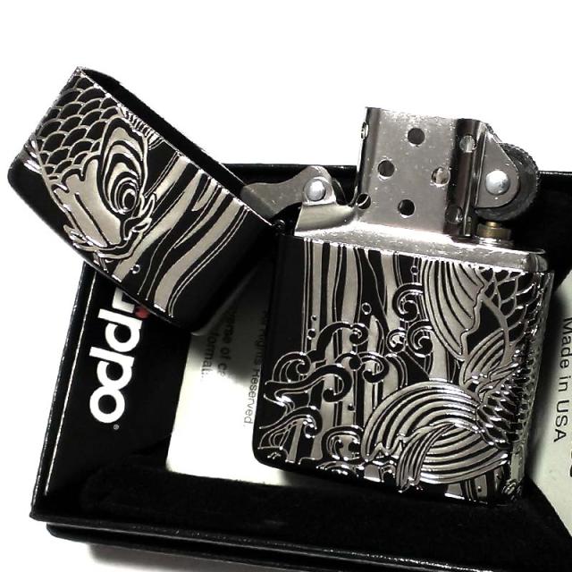 縁起の良い昇鯉が2面にかけて彫刻デザインされた躍動感溢れるZIPPOライター。