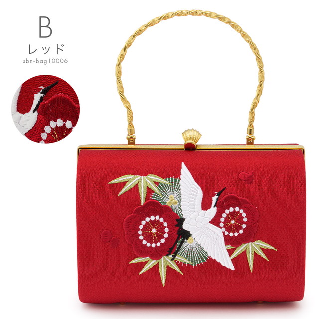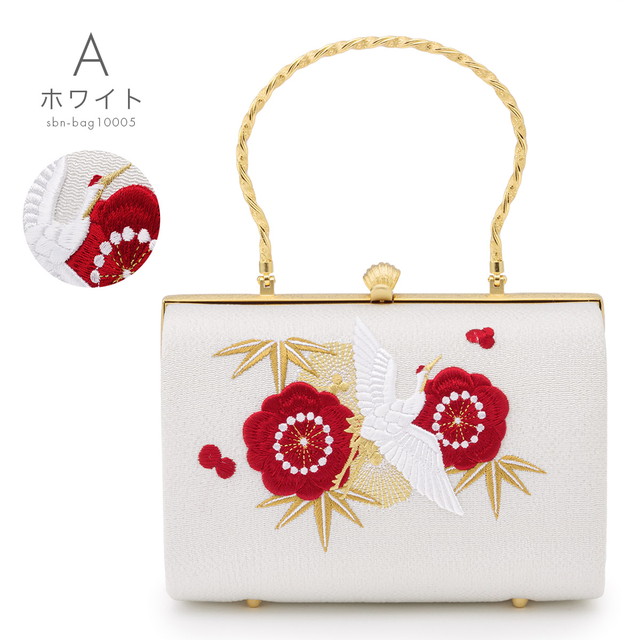 成人式 バッグ 単品 卒業式 振袖用 袴用 白 赤 黒 刺繍 ちりめん 松竹梅 鶴 レディース 女性用 販売 購入 ハンドバッグ 送料無料