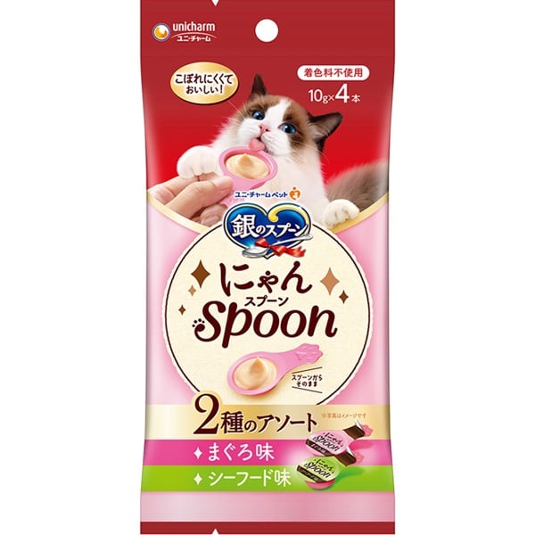 銀のスプーン にゃんスプーン 2種のアソート まぐろ味&シーフード味 40g(10g×4本)