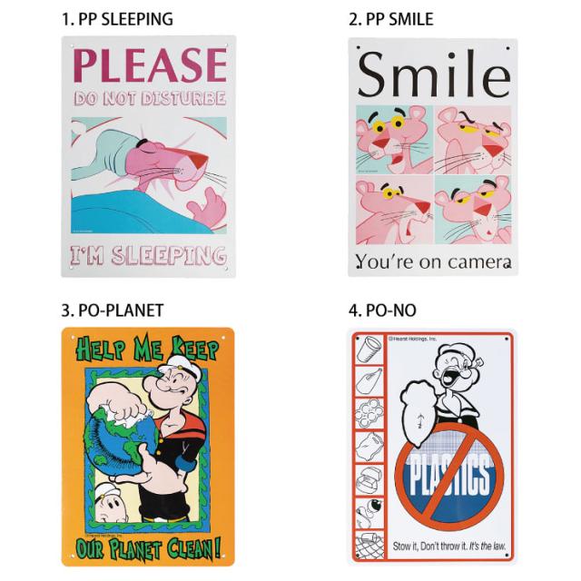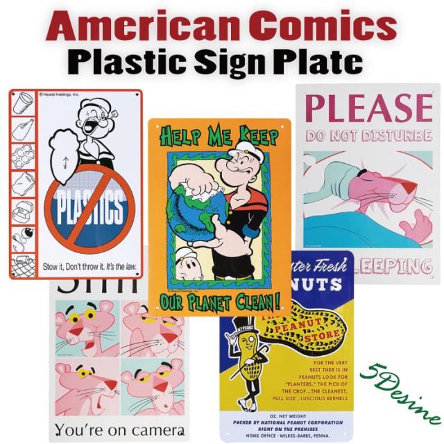 プラスチックサインプレート 看板 アメリカンコミック ピンクパンサー ポパイ ミスターピーナッツ アメリカン 壁掛け 壁飾り キャラクター サインボード メッセージ ボード 【アメリカン雑貨 カフェ バー ガレージ お部屋のインテリア 小物 アンティーク】5デザイン┃