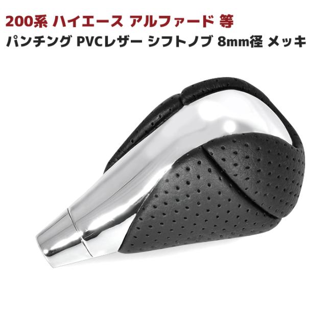 トヨタ マツダ 汎用 パンチングレザー シフトノブ 8mm径 メッキ PVCレザー 内装 カスタムパーツ ハリアー 60系 クラウン 170系 180系 200系 マジェスタ 210系 ノア ヴォクシー