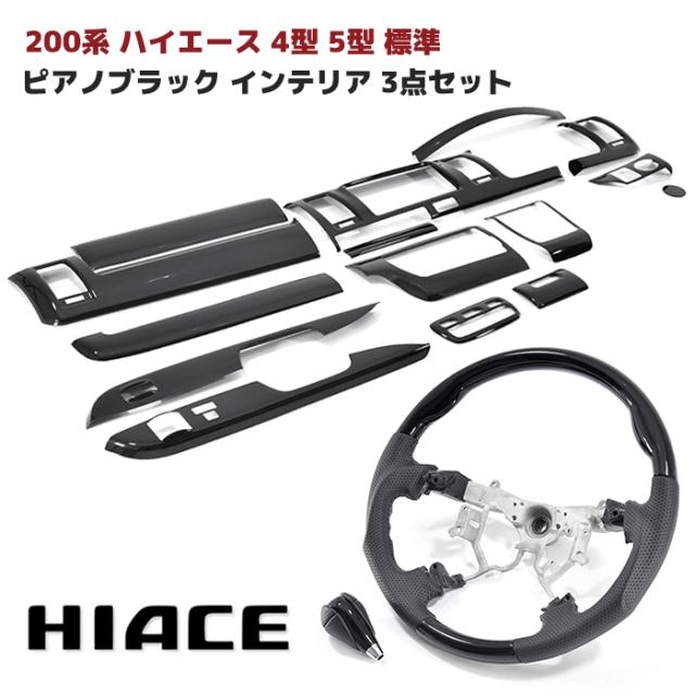 200系 ハイエース 4型 5型 6型 標準 ピアノブラック インテリア 3点セット パネル シフトノブ ステアリング