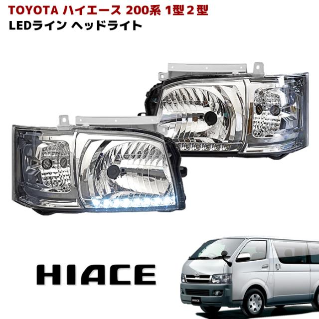 200系 ハイエース 1型 2型 ヘッドライト LEDライン付き アウディ風 Ver,2