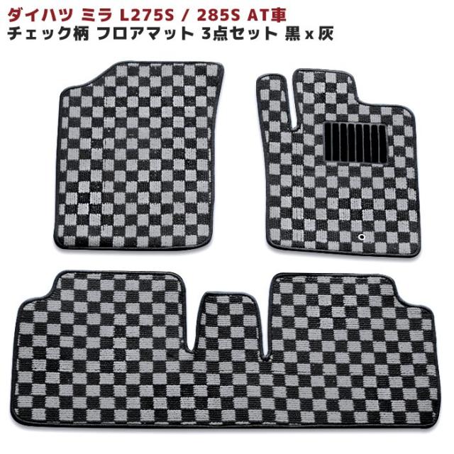 ダイハツ ミラ L275S L285S AT車 フロアマット チェック柄 ブラック・グレー 3点セット 内装 カスタムパーツ