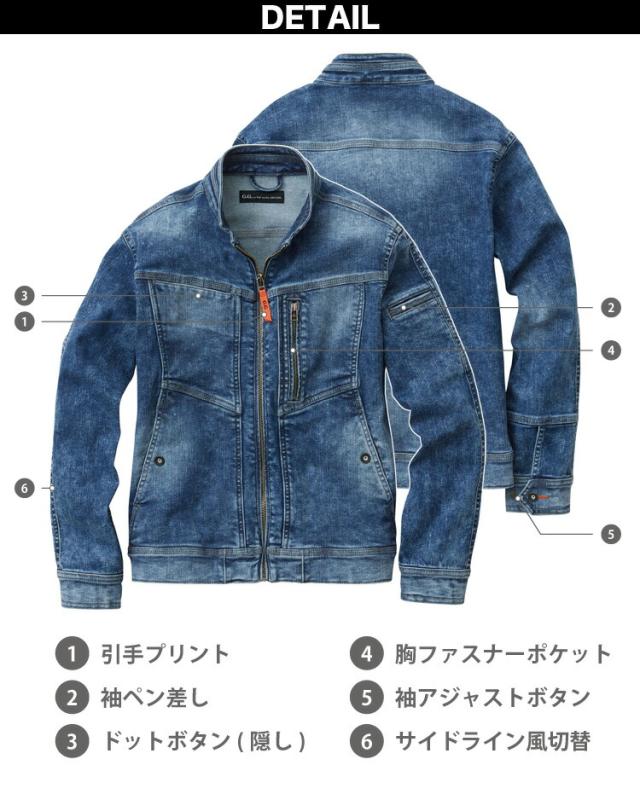 桑和 長袖ブルゾン 1682-00 S〜4L G.G.no limit on the GROUND. デニム 作業服 作業着 ストレッチ オールシーズン 2021年 秋冬 新作 おしゃれ かっこいい メンズ