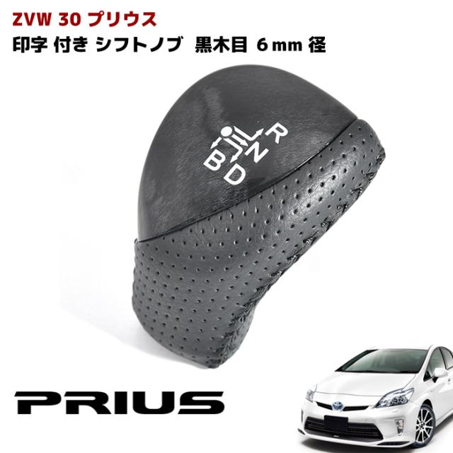 ZVW30系 プリウス シフトノブ パンチングレザー 黒木目 6mm径 シフトレバー ブラック ウッド トヨタ 30プリウス 内装 カスタムパーツ