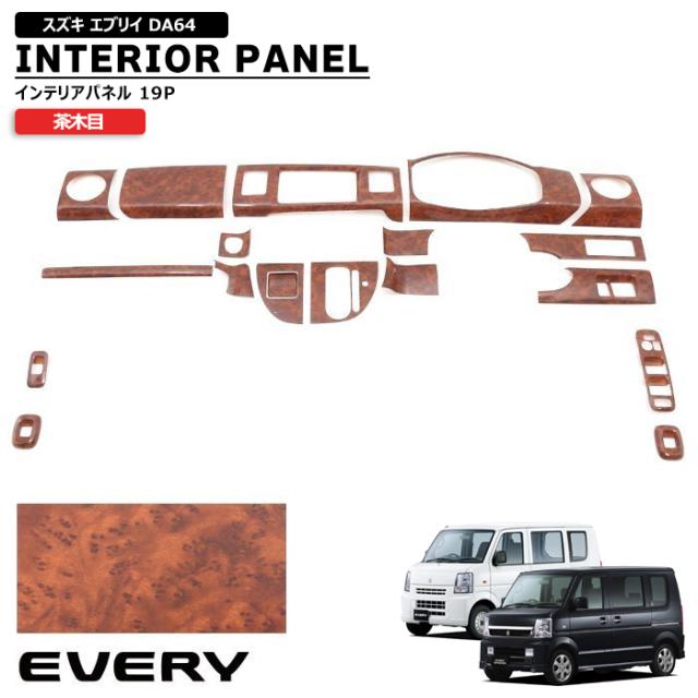 DA64W DA64V エブリイ 3D インテリアパネル 茶木目 19P 新品 エブリィ バン ワゴン スズキ 内装 カスタムパーツ インパネ