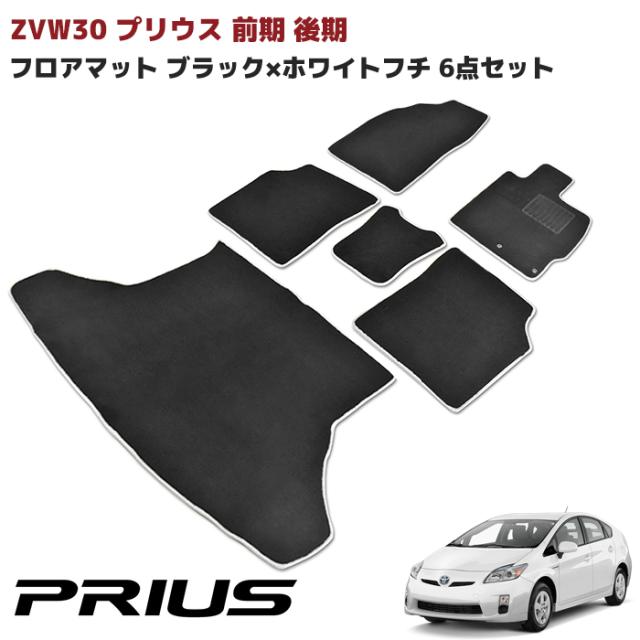 ZVW30系 プリウス 前期 後期 フロアマット ブラック × ホワイト フチ 6点セット フロント リア ラゲッジ 1台分セット