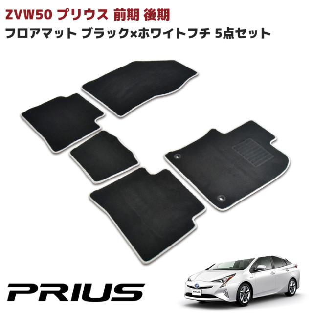 ZVW50系 プリウス 前期 後期 フロアマット ブラック 白フチ 5点セット 専用設計 高品質 トヨタ 50プリウス 内装 カスタムパーツ 無地