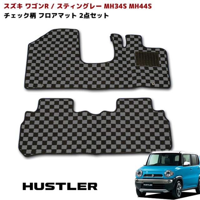 MR31S ハスラー チェック柄 フロアマット 2点セット 黒灰