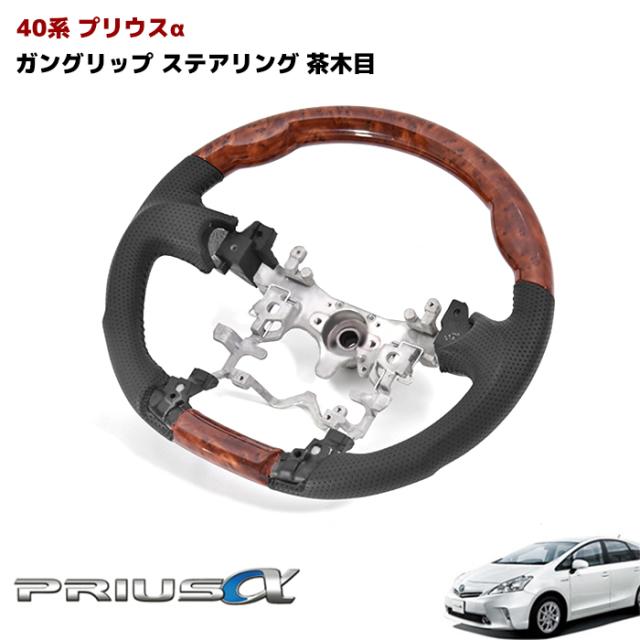 ZVW40系 プリウスα ガングリップ ステアリング 茶木目 ハンドル トヨタ カスタムパーツ 内装 40プリウス プリウスa