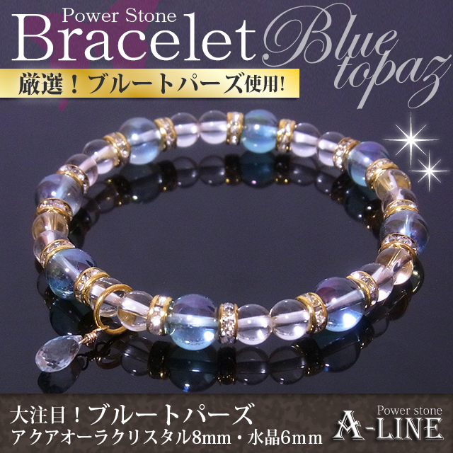 パワーストーン ブレスレット ブレストップに11月の誕生石 ブルートパーズ アクアオーラ8mm PW-3465