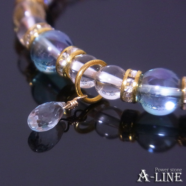 ブルートパーズ(ワイヤー)・アクアオーラクリスタル8mm、水晶6mm&8mm・合金ロンデル・国産高級オペロンゴム