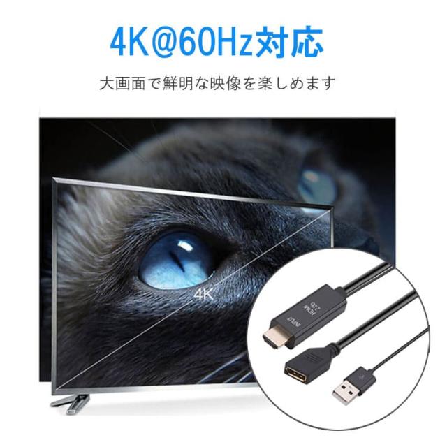 HDMI to DisplayPort 変換アダプタ HDMI オス ディスプレイポート メス 変換ケーブル 給電用USBポート付 HDMI2DP25C