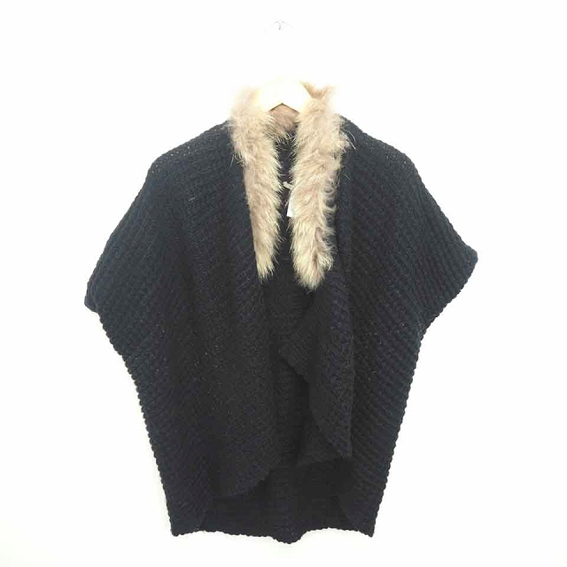 【中古】レディラックルカ LADY LUCK LUCA カーディガン ニット トッパー ラクーンファー 半袖 黒 ブラック /TT9