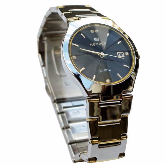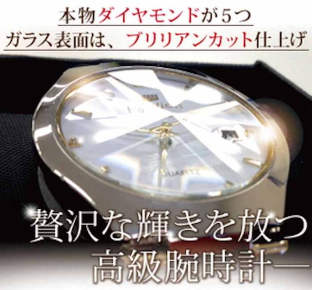 腕時計 ウォッチ 防水 高級 ダイヤモンド おしゃれ メンズ カレンダー付き 送料無料 【Herrlich 天然ダイヤモンド5石使用 ブリリアントカット高級腕時計】【送料無料】 シンプルなデザインにガラス表面がブリリアンカット仕上げ。 mate