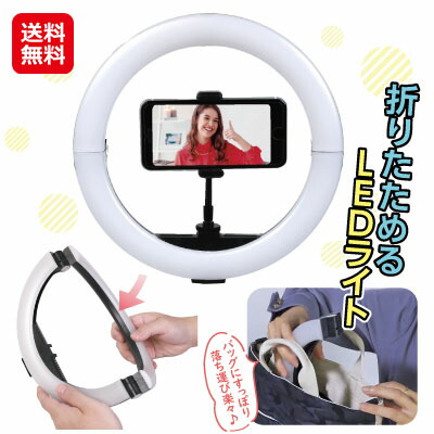 【折り畳めるLEDリングライト】【送料無料】ケンコー リングライト スマホスタンド 折りたたみ 携帯 持ち運び USB給電 動画撮影 照明 撮影用ライト LED タッチセンサー 明るさ調整 無段階調光 色温度2700K〜5600K sl