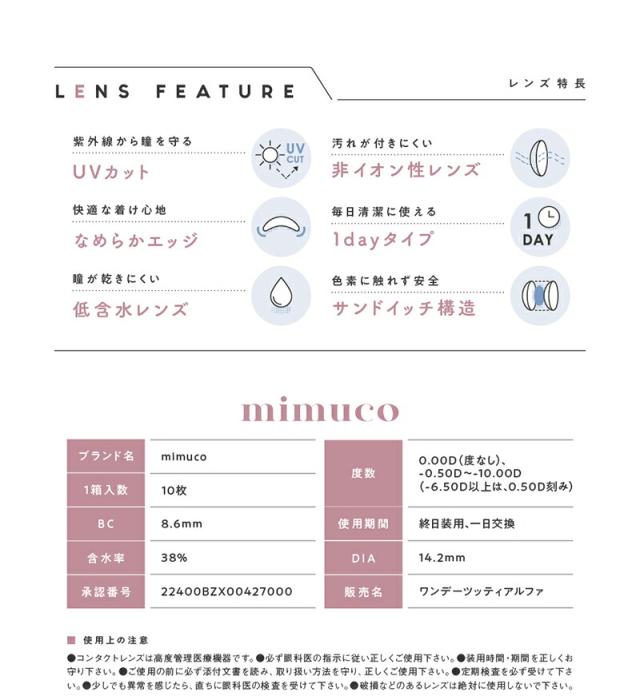 商品名: mimuco(ミムコ)(10枚入×6箱セット[60枚])(1day)(度あり・度なし)