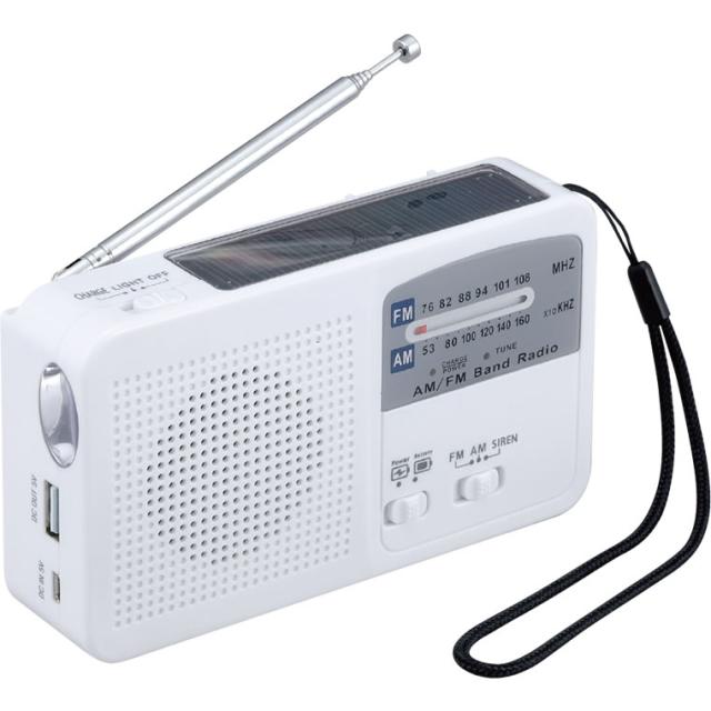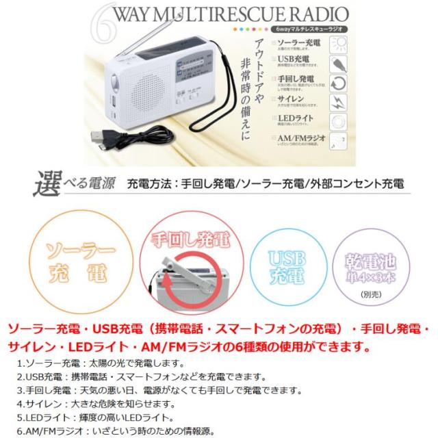 【6WAY マルチレスキューラジオ】 防災ラジオ 多機能 小型 電池式 ソーラー充電 手回し充電 USB充電 サイレン LEDライト AM/FMラジオ コンパクト 持ち運び 防災グッズ 防災用品 sl