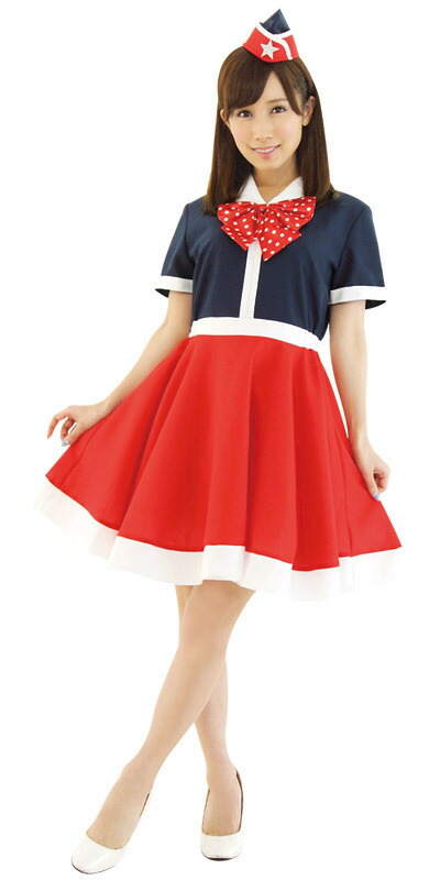 レトロながらもポップな雰囲気漂うキャビンアテンダント風コスチューム!