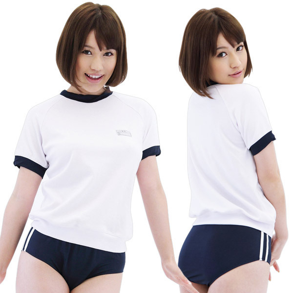商品詳細: 今じゃブルマはコスプレだけのもの?!昔なつかしの体操服のコスチューム! 白のTシャツには紺のラインが、紺のブルマには白のラインが入って、いかにも学校指定な雰囲気ですね! 準備運動のストレッチ、あの子とペアにならないかな?