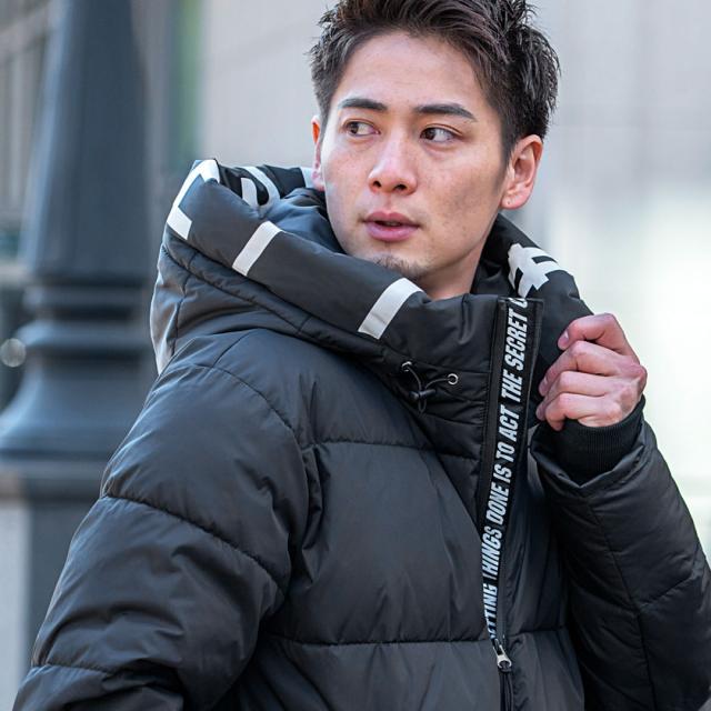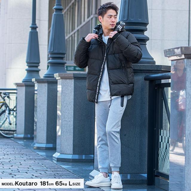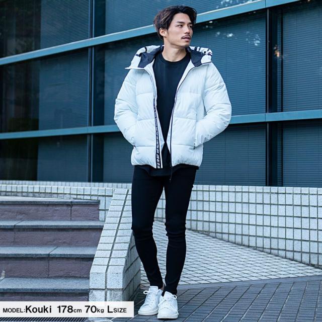 中綿ジャケット メンズ アウター ブルゾン フーディー ロゴテープ プリント 厚手 防寒 止水ジップ ラグジュアリースポーツ ラグスポ 黒 白 カジュアル ストリート スポーティー 韓国ファッション CavariA キャバリア 秋 冬 即日発送配送について