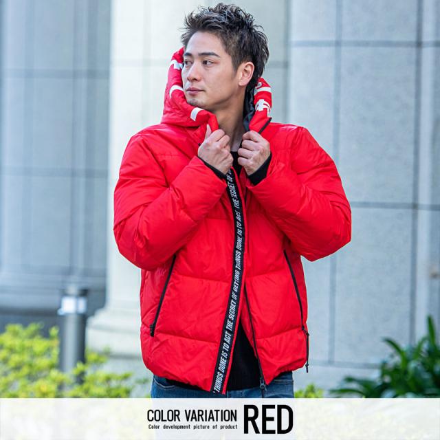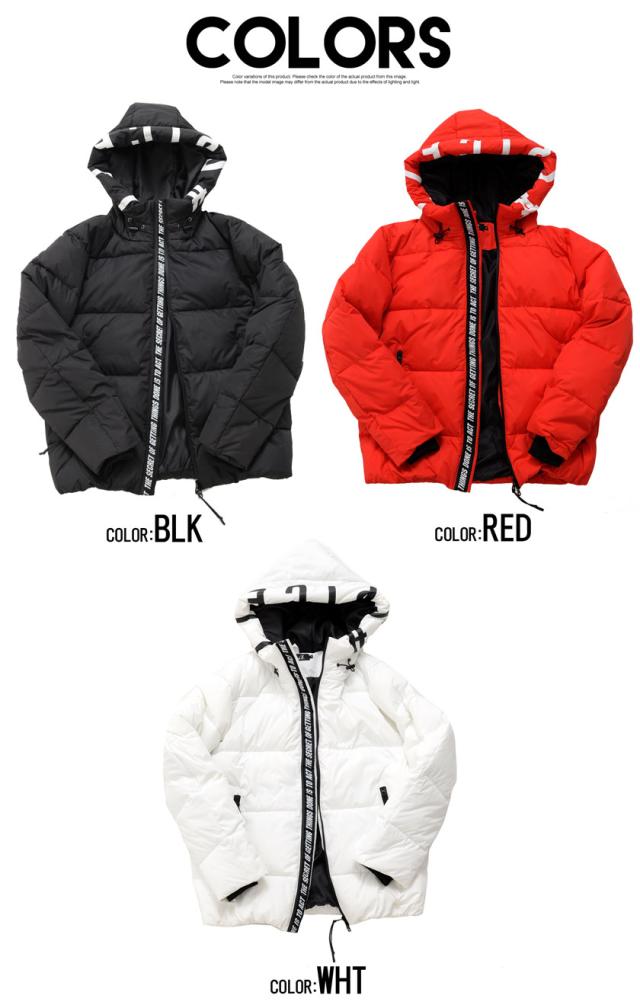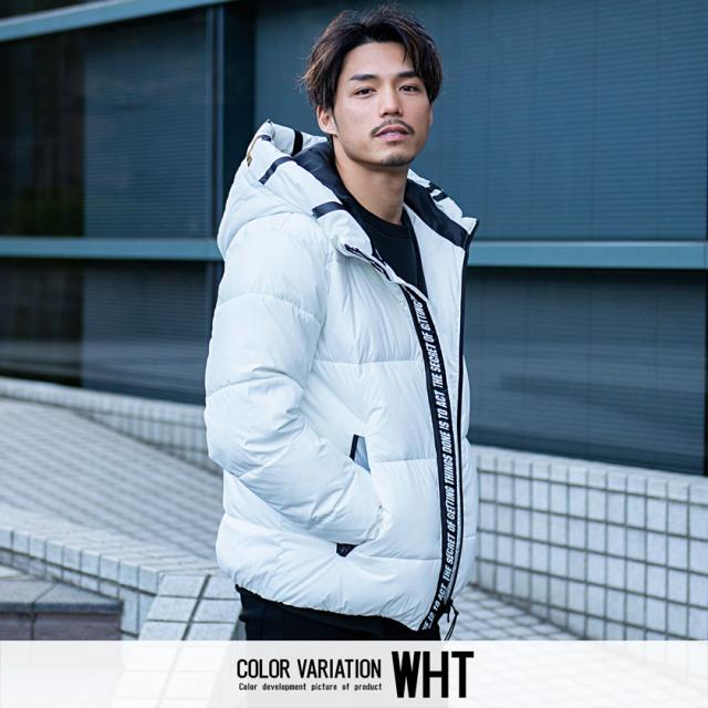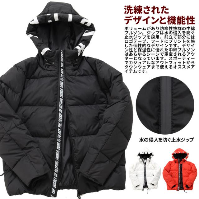 中綿ジャケット メンズ アウター ブルゾン フーディー ロゴテープ プリント 厚手 防寒 止水ジップ ラグジュアリースポーツ ブラック ホワイト レッド 黒 白 M L カジュアル ストリート スポーティー CavariA キャバリア 秋 冬 即日発送 [CATN21-26]