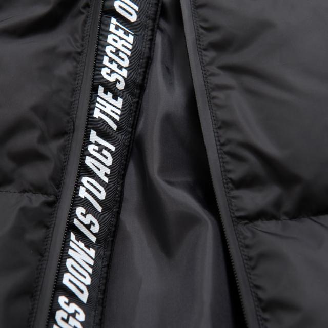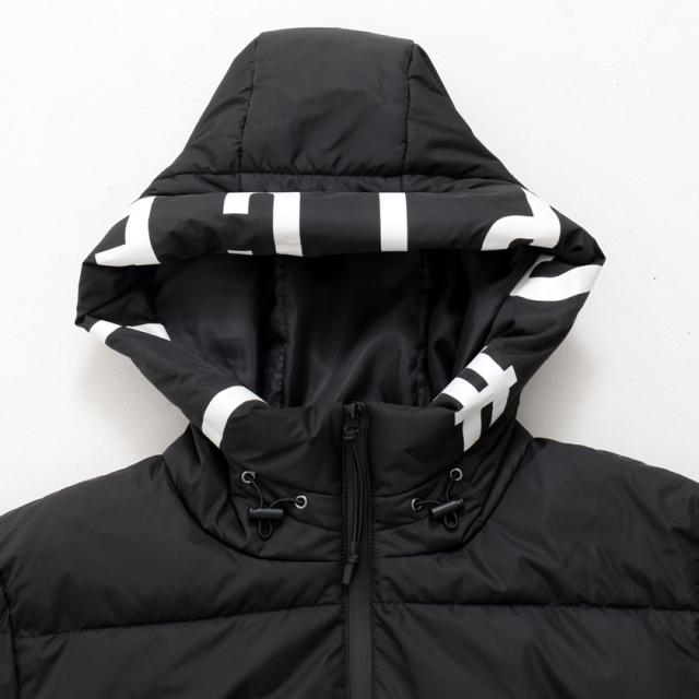 前立て部分にはロゴテープ、フードにプリントを施した個性的なデザインです。