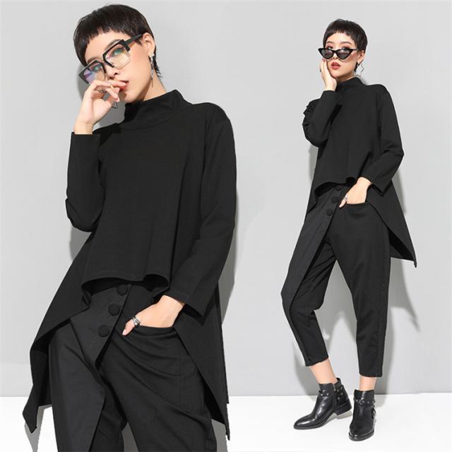 トップス モード系 長袖 レディース ハイネック アシンメトリー 個性的 不規則 ゴシック アシメ イベント ボトルネック 春秋冬 ステージ衣装