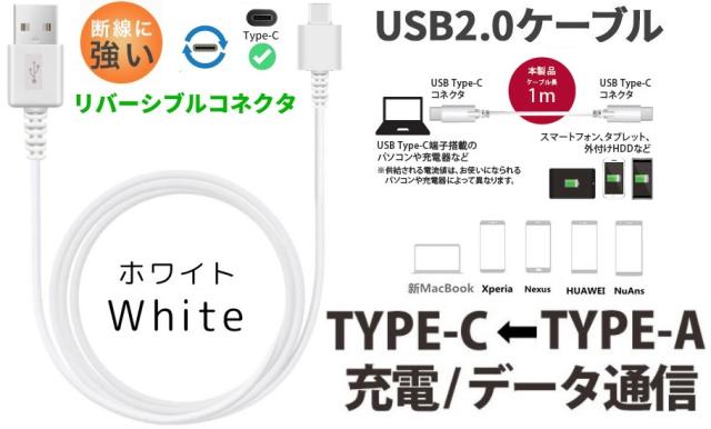 Type-C スマホUSBケーブル TypeC充電ケーブル ロングブッシュ 断線しにくい充電ケーブル 1m 充電&通信対応 タイプCケーブル ホワイト