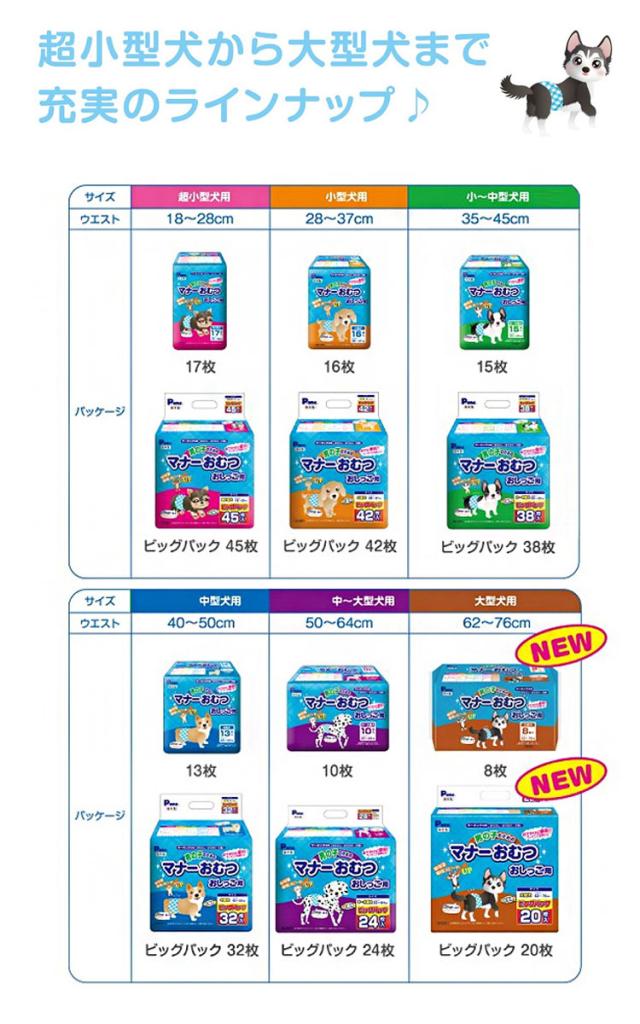 | 超小型犬/45枚 | 小型犬/42枚 | 小〜中型犬/38枚 |