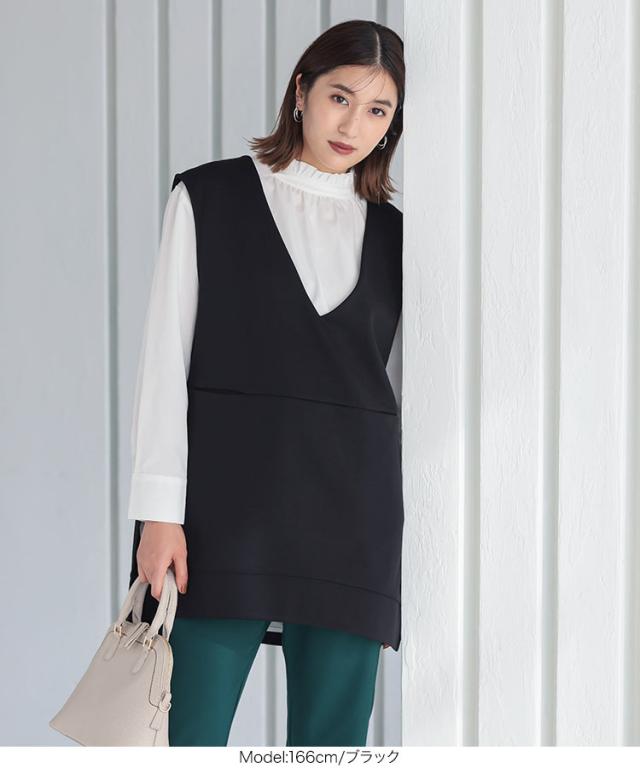 裏起毛ダンボールVネックベストトップス C5821 入荷済 レディース プルオーバー レイヤード セットアップ 秋冬 体型カバー