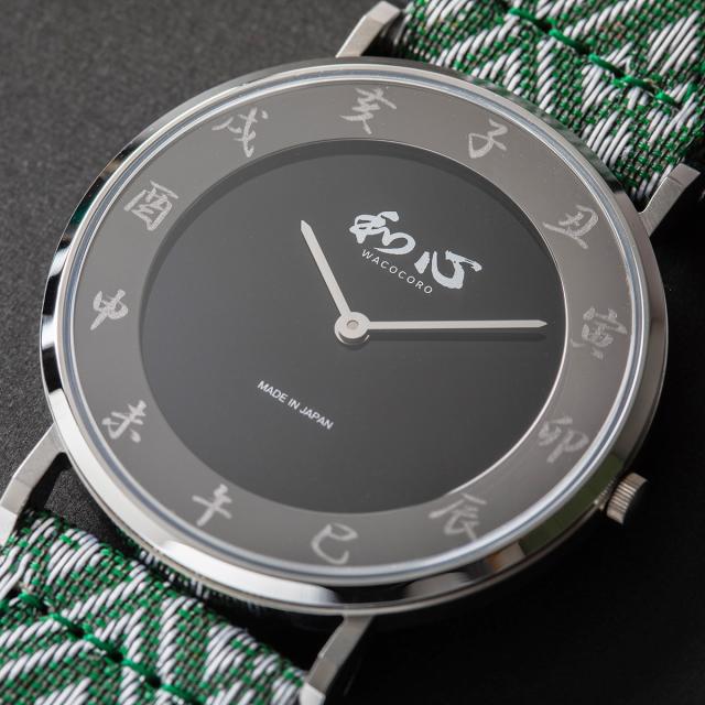 和心 畳縁バンド 薄型 日本製腕時計 無地 黒 メンズ腕時計 時計